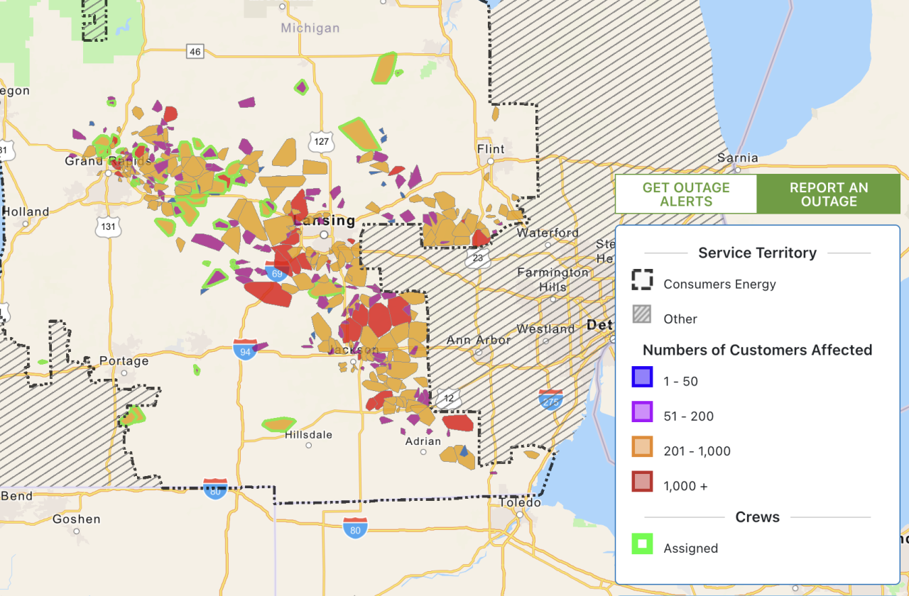 Power Outage Map Hillsdale Mi – UPDATE: As of 3:00 a.m. Wednesday, Consumers Energy is now reporting just over 25,000 customers currently without power. Most of those without power are in Southwest Michigan. Governor Whitmer has . Lost power? Check the outage map to see if we’re aware of the outage. If your outage isn’t shown, call 1 800 BCHYDRO (1 800 224 9376) or *HYDRO (*49376) on your mobile or report it online. See our .